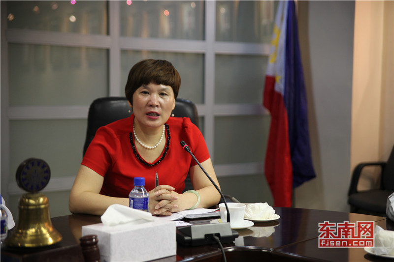 福建日報社東南網海外部主任王艷玲講話。 王艷玲對菲華工商總會的熱情接待表示感謝,她介紹了福建日報社東南網、東南網海外部的成長歷程和發展現狀。她說,東南網菲律賓站將于7月22日在馬尼拉揭牌成立,菲律賓站將立足于服務在菲閩籍社團和鄉親,把祖(籍)國最新的惠僑政策和家鄉日新月異的發展變化傳遞給在菲閩籍鄉親。同時,把在菲鄉親的愿望與心聲傳回祖(籍)國,宣傳他們為住在國所作的貢獻。王艷玲邀請菲華工商總會領導出席東南網菲律賓站揭牌儀式,希望與菲華工商總會常來常往,共同推動中菲在文化、教育、經貿、旅游等領域的交流與互動。 “我們希望將來能與東南網菲律賓站合作,為中菲民間友誼作出積極的貢獻。”黃拔來對東南網即將落地菲律賓表示極大的期盼。