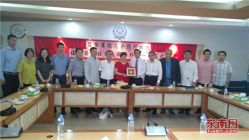 黃年榮代表商總向東南網海外部贈送紀念品。 東南網菲律賓7月2日訊(本網記者 鄧春花 陳瑋煒)“菲律賓是中國友好近鄰,也是‘一帶一路’建設的重要伙伴。菲律賓有近90%的僑胞是福建人,希望能與來自家鄉的媒體多交流合作,攜手參與“一帶一路”建設,共同譜寫中菲民間友誼新篇章。”菲華商聯總會(下簡稱:商總)理事長黃年榮對于東南網即將落地菲律賓表示支持與祝賀。 7月1日,東南網海外部主任王艷玲一行拜訪菲華商聯總會,邀請商總領導出席將于7月22日在馬尼拉舉行的東南網菲律賓站揭牌儀式,并與商總開展友好座談交流。秘書長顏長江主持座談。