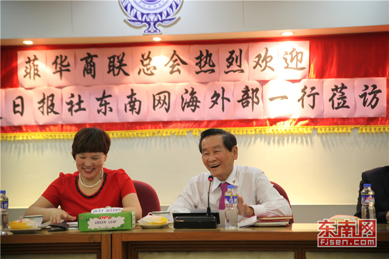 菲華商聯總會理事長黃年榮講話。 菲華商聯總會理事長黃年榮對王艷玲一行的到來表示熱烈歡迎。他說,作為菲律賓最具影響力的華社之一,商總始終秉承增進地方繁榮、謀求合法權益、團結全菲商人、加強菲華友好等宗旨,凝聚廣大旅菲僑胞中蘊藏的巨大能量,為推動中國與菲律賓經濟社會的共同發展,不斷作出更大的貢獻。他相信,東南網即將成立的菲律賓站,能夠進一步加深中菲兩地信息交流,同時也為華人華僑提供更優質的信息服務平臺。最后,黃年榮預祝東南網菲律賓站揭牌取得圓滿成功。 王艷玲對商總的熱情接待表示感謝,介紹了福建日報社東南網、東南網海外部的成長歷程和發展現狀。她說,菲律賓的華人華僑有著雄厚的資金實力與廣博的人脈關系,他們在促進中菲經濟合作中發揮著巨大的作用。東南網堅持“有華人的地方就有福建人,有福建人的地方就有東南網”的辦網理念,增進僑社和諧,在講好中國故事、傳播好福建聲音的同時,講好菲律賓的華人華僑故事。搭建在菲華人華僑與祖(籍)國之間密切聯系的網上橋梁,推動菲律賓與中國(福建)文化、教育、經貿、旅游等領域的交流合作。