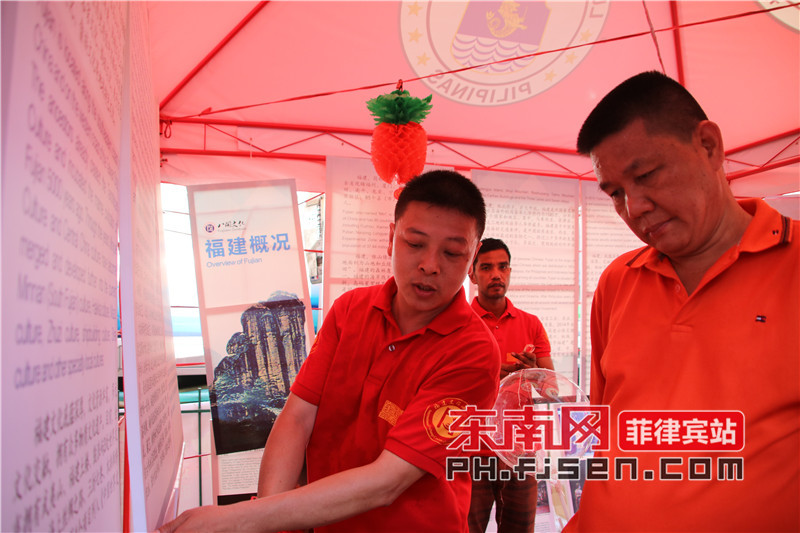 東南網菲律賓站站長洪五一(左一)向市民介紹福建文化。
