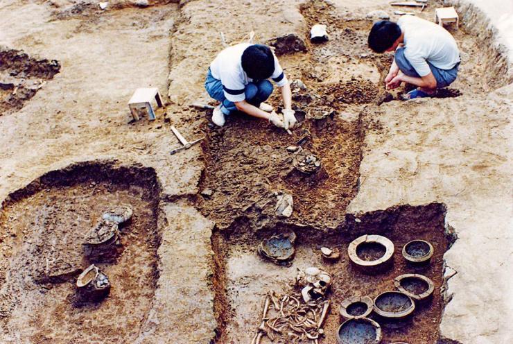 一段“挖”出來的歷史 ![]() 曇石山原名“墰石山”,是福建省閩侯縣城近郊的一座小山丘,東距福州市區(qū)約20公里。在福州話中,“墰”,即“海邊礁石”之意,此山并不似北方名山大川巍峨險峻,只是一個東北西南走向的“紡錘形”小山丘,南北長約430米,東西最寬處也不過150米。如此尋常的小山丘,卻因為1954年的一次意外發(fā)現(xiàn),改寫了福建的歷史。 那是1954年的1月7日,曇石山下曇石村的村民們正在山上取土,修筑村子周圍的閩江防洪堤壩。突然有人大喊“快來看啊,挖到寶貝了!”幾個樣式古舊奇特的瓦罐和一些形制規(guī)整、明顯帶有人工打磨痕跡的石器,赫然出現(xiàn)在挖開的土層中。在這些“寶貝”里,一件刃部鋒利的石斧格外打眼,當地的村民對它也并不陌生。以前,大雨沖刷過后的泥濘路面上,也冒出過幾把這樣的石斧,因為來歷不明,又與雷雨相關,當地人都把這種石斧叫做“雷公斧”,但從地底下挖出來還是頭一遭,而那些模樣古怪的瓦罐此前卻不多見,莫非曇石山上真的有寶貝?種種猜測在村民中流傳開來,消息不脛而走,很快引起了當地文物管理部門的注意。他們立刻派人到現(xiàn)場進行了勘探工作。勘探的結果令專家們欣喜不已——這竟然是一處新石器時代晚期的文化遺存,距今大概有5000年左右。但當時誰也沒有想到,這個發(fā)現(xiàn)將補寫出一個福建之前的“福建”。 ![]() 在1996年對曇石山文化遺址展開的第8次發(fā)掘中出土了大量精美的陶器,生動還原了曇石山人彼時的生活場景。下圖自上而下分別為陶壺、陶缽與陶杯。從這組陶器中,我們也可以感知,“水”對于臨海而居的曇石山人而言,有著舉足輕重的地位。 ![]() 福建古稱“閩”,《山海經》中一句“閩在海中”,賦予了這里一種孤遠而神秘的氣質。加之偏居東南沿海,遠離中原,史官們向來無意花費太多的筆墨記錄曾經發(fā)生在這里的故事。因此,人們關于福建文明起源的認知,始終停留在《史記·東越列傳》那篇幅不多的文字中。 根據司馬遷的記載,“閩人”被認為是這里最早的土著居民,而福建有明確紀年的歷史則只能追溯到公元334年。當時越王無疆伐楚兵敗身亡于昭關(今安徽省含山縣城以北),衰沒的越國王室貴族散落于沿海地區(qū),紛紛接受冊封,臣服于楚國。而一些不愿卑躬屈膝的越人,不得不放棄故土,顛沛流離,遷徙到今天的浙南和福建地區(qū)。在與當地土著“閩人”不斷融合的同時,他們也傳播了吳越和中原文化,逐漸形成了一個新的民族——閩越族。在此后的歷史中,漢武帝雖開疆拓土至此,卻始終不能在文化上使其“屬漢地”;三國時孫權五次出兵,才得立建安。 ? |