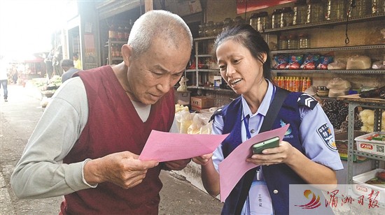 平安志愿者、網格員走村串戶,宣傳綜治工作。