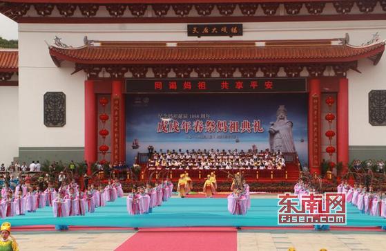 活動(dòng)現(xiàn)場(chǎng) 此次“同謁媽祖 共享平安”媽祖誕辰祭典活動(dòng)共有“天下媽祖回娘家”活動(dòng)、升幡掛燈儀式、紀(jì)念媽祖誕辰1058周年大會(huì)暨戊戌年春祭大典,包括貢品展覽、祈福平安燈、莆仙戲演出、民俗表演等在內(nèi)的非遺展示、“媽祖平安節(jié)”暨“安全宣傳月”主題系列活動(dòng)、大愛(ài)媽祖——2018魯樵中國(guó)畫(huà)邀請(qǐng)展暨王國(guó)寶新書(shū)《大愛(ài)媽祖》贈(zèng)書(shū)儀式、大型民俗歌舞《祥瑞湄洲》、國(guó)家級(jí)非遺正字戲《媽祖》展演等9項(xiàng)活動(dòng)內(nèi)容。