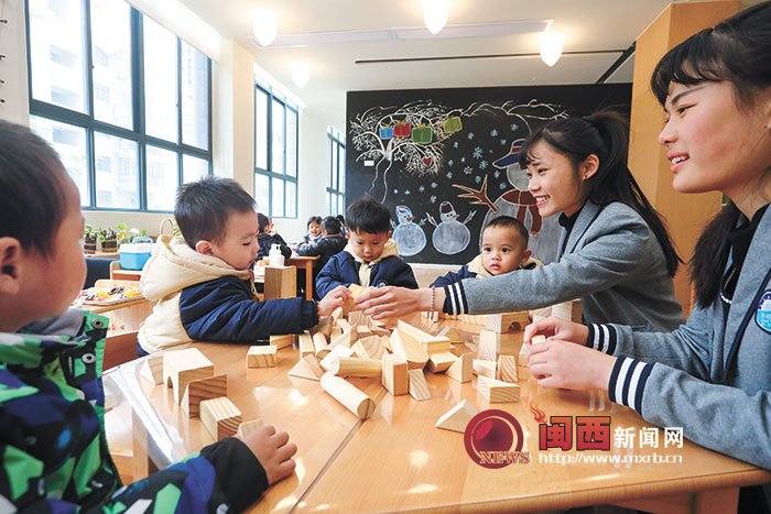 3日,龍巖經開區(高新區)一家民營幼兒園內,幼兒們在教師的陪伴下,動手搭積木。近年來,我市高度重視學前教育事業,已實施兩輪學前教育三年行動計劃。截至2018年9月,全市共有幼兒園651所,全市在園幼兒15.638萬人,學前三年適齡幼兒入園率99.85%。據悉,2016—2020年,擬新建幼兒園115所,可新增學位40975個;擬改擴建幼兒園106所,可增加學位12550個。針對中心城區學前教育資源短缺問題,龍巖市規劃至2030年,主城區規劃設置134所幼兒園。 記者 陳律全 攝 |