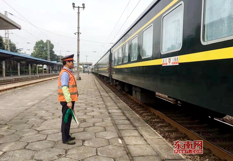 列車緩緩駛進了漳州東站,月臺上只有零星的旅客 蘇晟 攝 蘇晟:我們還會堅守崗位,發揮漳州東站的余熱 蘇晟在漳州東站擔任后勤保障工作,至今已經22年。1月4日那天下午,望著最后一班客運火車的遠去,他默默的在心里道了聲再見。 1997年,19歲的他從福州技校鐵路運輸專業畢業后就被分配到漳州東站。20多年來,在這里度過了美好青春的他,見證了漳州東站曾經的繁忙與輝煌。 “我剛來這里上班的時候,還沒有候車廳和售票廳,站前廣場也沒有鋪水泥路,條件比較簡陋。當時在漳州要搭乘火車只能到郭坑站,所以每天站前廣場都排滿了人,當時7條功能性軌道,6條貨物線、專用線都停滿了火車,有200多名工作人員,車站一天到晚熙熙攘攘、人來車往。”蘇晟回憶道,“特別是每年春運的時候,大批的回鄉民工就聚集在小小的售票窗口前,拖著行李帶著棉被,徹夜的排隊買票,等車回家。火車上過道里全塞滿了人,乘務員甚至要幫忙把乘客托舉著從車窗爬進車內。” 2013年12月,廈深鐵路竣工通車,漳州站成為龍廈鐵路與廈深鐵路的樞紐站。“高鐵開通,出門更加快捷、便利,大部分客車分流到了漳州站,目前漳州東站只保留了K1210往上海、K244往西安、K946往貴陽3對客運,貨運業務也由月裝1000多車銳減為現在的100多車左右。”蘇晟介紹道。 “其實自從漳州動車站建成后,這里的乘客一直在減少,大家也都知道早晚會有這么一天,已經有很長時間的心理準備了,并不是很感傷,這是漳州鐵路事業發展和進步,我們都應該感到高興。”蘇晟笑著說道,“現在我們這里的員工就剩50人左右了,雖然已經沒有客運業務了,但是貨運還在,我們還是會繼續堅守工作崗位,發揮漳州東站的余熱。”
