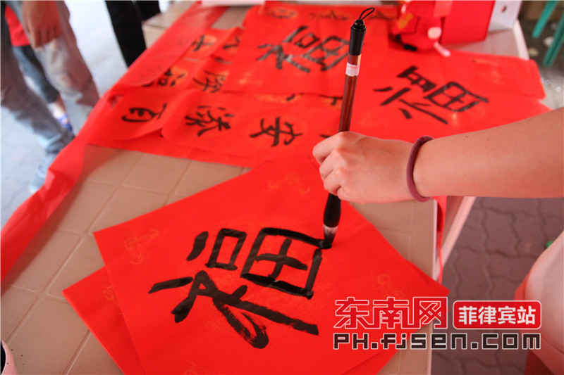 菲律賓本土藝術家現場展示菲律賓書法藝術。 東南網菲律賓2月5日訊(本網記者夏芳 李琪琪)為了在菲律賓弘揚春節獨特的民俗特色,展示中華文化魅力,福建日報社東南網海外部、菲律賓站聯合菲律賓福建文化海外驛站于2月5日(中國農歷大年初一)在馬尼拉華人區舉行“過春節 寫百福”筆會。活動現場,菲律賓老中青華僑華人與當地書法藝術家聯袂創作,呈現出中菲文化相互交融的特點,吸引了大批馬尼拉市民駐足欣賞。 菲律賓本土藝術家加佑(Jayo)現場展示了菲律賓書法藝術,在福紙上寫著“Filipino(菲律賓人)”字樣。他坦誠地告訴記者,中國“福”字太難寫了,他更擅長寫菲律賓書法,在中國福紙上寫著“Filipino”也寓意著中菲友誼將更加牢固密切。 “我去過中國很多地方,比如香港、上海、北京等地,但是還沒去過福建。我知道菲律賓有很多華人祖籍地都來自福建,下個月我就計劃去福建,聽說那里非常美麗。”加佑笑著向記者說,用書法慶祝中國春節的方式很特別,他希望今后能更多地了解中國春節習俗。 參加當天活動的菲律賓閩籍僑胞、書法家等表示,中國書法文化底蘊深厚,通過寫“福”字、送“福”字的方式,可以讓菲律賓當地民眾更好地了解中國春節民俗特色,共同分享 “中國年”的喜慶氛圍。