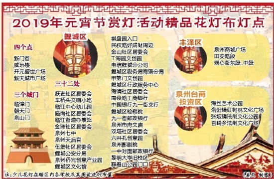 春節(jié)一過,元宵在即。賞花燈是泉州人鬧元宵的傳統(tǒng)習(xí)俗,有別于往年“集中亮燈、扎堆觀燈”的形式,今年泉州元宵節(jié)賞燈活動有了新變化。 為營造喜慶元宵佳節(jié)的節(jié)日氛圍,方便群眾就近賞燈觀燈,今年元宵節(jié)賞燈活動將按照“全城賞燈、多點紛呈”的布燈形式,將精品花燈、創(chuàng)意花燈和喜慶紅燈籠等分點分線布置在鯉城區(qū)、豐澤區(qū)和泉州臺商投資區(qū)主要街道及公園廣場、標志性建筑、沿街商戶門面等公共場所,而不是像往年集中在新門街、中駿世界城和泉州臺商投資區(qū)海絲藝術(shù)公園亮相展示。與此同時,其他縣(市、區(qū))也將有序開展系列觀燈活動。這也意味著,廣大市民無需再像往年一樣“趕集式”賞燈,在家門口附近就能一探花燈斑斕,既熱鬧又溫馨。 □記者 陳林森 節(jié)慶氛圍更濃 花燈量多質(zhì)高 多彩活動熱鬧全城 今年元宵節(jié)整體掛燈數(shù)量比往年多,中心城區(qū)布置的花燈達1106盞,其中鯉城區(qū)將布置720盞、豐澤區(qū)布置386盞。這1106盞花燈形式多樣、各具特色,有些花燈造型新穎,采用了新材料,富有藝術(shù)性、觀賞性、創(chuàng)新性。同時,為了體現(xiàn)元宵佳節(jié)的全民參與性、互動性,今年的賞燈活動,部分展示點還將懸掛展示各地學(xué)生精心制作的創(chuàng)意花燈,與各式喜慶紅燈籠、氛圍燈、紙燈串等,一起扮亮整座光明之城。 同時,元宵節(jié)期間,市、縣兩級文旅部門還將推出豐富多彩的文化活動,包括市級展覽展示類活動19項、展演類活動45項及縣級文化活動75項,廣大市民可在節(jié)日期間自主選擇參與。 元宵民俗延續(xù) 花燈技藝競艷 留住千年文化鄉(xiāng)愁 泉州鬧元宵習(xí)俗和泉州花燈是國家級非物質(zhì)文化遺產(chǎn)項目,起于唐代,盛于宋、元,延續(xù)至今,歷史悠久,影響廣泛,在全國范圍內(nèi)具有鮮明的地方特色和藝術(shù)特色,是南方花燈的代表。 元宵賞燈是泉州市的一項重要民俗文化活動,將長期堅持傳承弘揚下去。布燈形式的改變,是創(chuàng)新花燈技藝常態(tài)化展示的一種嘗試,力求能夠更好地推動泉州花燈、泉州鬧元宵習(xí)俗等非物質(zhì)文化遺產(chǎn)的保護、傳承和永續(xù)發(fā)展,豐富廣大群眾的精神文化生活。今年的賞燈活動,市民群眾將可以在各展示點欣賞到新采購制作的200盞精品花燈以及各色傳統(tǒng)花燈、創(chuàng)意花燈,這些花燈充分展現(xiàn)了近年來泉州花燈制作的精湛工藝水平和傳承成效。 “年年歲歲月相似,歲歲年年燈不同?!比菰?jié)賞燈活動將在傳承延續(xù)中不斷弘揚創(chuàng)新,在弘揚創(chuàng)新中不斷改進提升。 花燈布點優(yōu)化 合理均衡分布 全城賞燈多點呈現(xiàn) 往年,鯉城區(qū)新門街、豐澤區(qū)中駿世界城、泉州臺商投資區(qū)海絲藝術(shù)公園是泉州元宵花燈的集結(jié)地。廣大市民賞燈目的地可選項受限,從四面八方集中涌向這三處地方,常常要為在擁堵中觀燈而擔心發(fā)愁,特別是老人、小孩、殘障人士十分不便,且有安全隱患。 今年賞燈布點全面優(yōu)化,做到點線面結(jié)合,不僅點多面廣、空間合理、均衡覆蓋,而且擴大了展示范圍,整體展示規(guī)模也隨之擴大,市民觀燈有了更多選擇。 掛燈既全城展開,又有“點線”的呈現(xiàn)—— 鯉城區(qū)將多形式把精品花燈及氛圍燈分布到古城區(qū)域和進出城通道上。其中,精品花燈擬在“四點、三門、三十二處”進行布置,即在新門街、威遠樓、開元盛世廣場、新天城市廣場等四個點懸掛170盞,在臨漳門、朝天門、泉山門等3個城門樓上懸掛40盞,在古城內(nèi)32處標志性建筑和公共場所懸掛169盞;少兒花燈擬在各學(xué)校及其周邊進行布置。 豐澤區(qū)今年不再于中駿世界城設(shè)立展區(qū),將盡量在各個路段、區(qū)域布置精品花燈、創(chuàng)意花燈,便于群眾就近賞燈。其中,將在湖心街東段和中段懸掛170盞;在泉州商城廣場一樓外圍連廊懸掛30盞;在田安路兩側(cè)懸掛186盞。 泉州臺商投資區(qū)擬在海絲藝術(shù)公園、洛陽鎮(zhèn)紅樹林文化廣場、張坂鎮(zhèn)法制文化公園、百崎鄉(xiāng)法制文化廣場等4個地方布燈,讓市民在家附近就能感受濃濃元宵味。 觀燈體驗提升 保障措施到位 時間拉長線上同步 往年,在花燈集中展示區(qū)賞燈,短時間內(nèi)人流匯聚造成交通擁堵,市民摩肩接踵,賞燈體驗不佳。今年泉州元宵節(jié)賞燈創(chuàng)新布燈方式,由集中展示變?yōu)槎帱c呈現(xiàn),分散人流人群,避免交通堵塞,有利于市民群眾就近、分點、有序觀燈,提升賞燈舒適度。 與往年有所不同,今年布燈時間將適當提前。從2月11日(正月初七)開始,各色元宵花燈將陸續(xù)在各展示點亮相,2月16日(正月十二)懸掛完畢,至2月21日(正月十七)收燈。在此期間,市民可就近一睹花燈芳容。 同時,泉州網(wǎng)開設(shè)了“網(wǎng)絡(luò)中國節(jié) 元宵”專題,將泉州中心市區(qū)和各縣(市、區(qū))的花燈盛況,通過網(wǎng)絡(luò)向海內(nèi)外泉州人展示,方便大家網(wǎng)上觀燈,并開設(shè)了網(wǎng)上互動專區(qū),評選人氣花燈,讓市民在網(wǎng)上觀燈時可以為自己喜歡的花燈點贊。 此外,各級各相關(guān)部門將充分調(diào)查摸底各布燈點周邊情況,做足前期保障服務(wù)工作。從2月12日(正月初八)開始,