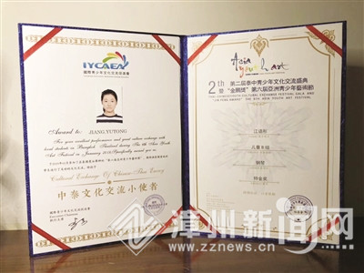 江語彤在參賽現(xiàn)場 江語彤是漳州市實驗小學(xué)五年級的學(xué)生。2019年1月26日,第二屆泰中青少年文化交流盛典暨“金鵬獎”第六屆亞洲青少年藝術(shù)節(jié)在泰國落下帷幕,江語彤憑借嫻熟的鋼琴技藝和優(yōu)異的成績,以一首《塔蘭泰拉舞曲》榮獲藝術(shù)節(jié)鋼琴特金獎,為此她也獲得“中泰文化交流小使者”稱號。 據(jù)了解,第二屆泰中青少年文化交流盛典暨“金鵬獎”第六屆亞洲青少年藝術(shù)節(jié)旨在傳播和弘揚亞洲各國民族文化藝術(shù),增進中泰兩國青少年的了解和友誼。國內(nèi)上海、云南、新疆、貴州、湖南、湖北、香港等地區(qū)40多名琴童入圍參賽。11歲的江語彤經(jīng)過層層角逐,一路過關(guān)斬將,摘得賽事桂冠特金獎。