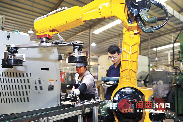 昨日,在新羅區龍州工業園區福建威爾特汽車動力部件有限公司生產車間內,工人正在操作六軸機械臂加緊生產。近年來,新羅區抓緊抓實工業“2253”工程,突出“雙培育”“雙倍增”計劃,聚焦產業轉移升級,優化產業結構,引導企業引進和創新技術,提高企業生產自動化水平。 記者 王耀輝 通訊員 丘棟輝 攝 |