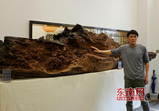 林建軍創作的木雕作品《木蘭溪》 東南網莆田4月9日訊(本網記者 王龍風 文/圖)“木蘭春漲與江能,日日江潮送曉風。”宋代興化邑人龔茂良賦詩歌頌木蘭陂的千秋功績和建設們無私奉獻的精神。“清清溪水木蘭陂,千載流傳頌美詩。公而忘私誰創始,至今人道是錢妃。”郭沫若1962年秋游覽木蘭陂后欣然以詩文抒情。古往今來,文人墨客賦詩文謳歌木蘭陂的多有。有一位工藝美術大師,則以刀代筆,把木蘭陂雕刻在國家級非遺項目——莆田木雕上,以此謳歌那可歌可泣的治水精神。近日,莆田市委宣傳部組織省級駐莆媒體開展“木蘭溪沿岸行”采風活動,探訪這件工藝美術作品《木蘭溪》。 這件《木蘭溪》木雕工藝美術作品的作者名叫林建軍。他是國家級非遺莆田木雕(省級)代表性傳承人、福建省工藝美術大師、莆田市藏雲堂精微透雕藝術研究院院長。這件作品由金絲楠木雕刻而成,規格為425*65*90厘米。作品里,木蘭陂是最主要的構成要素,溪水穿過木蘭陂奔涌而下。在溪水沿岸,農家小院和田園牧歌意象相得益彰,將木蘭溪孕育莆仙大地肥沃的土地以及孕育出璀璨的農耕文明,生動形象地展現出來。 “從古至今,一條河始終牽動著莆田人的心,那就是我們的母親河木蘭溪。我覺得我有責任拿起我手中的刻刀,用我的真情實感,把故鄉的風土人情、歷史風貌,用傳承千年的莆田木雕技藝展現出來。”林建軍說,他于1995年開始學藝,1999年超強臺風引發的洪水帶來的災害讓他記憶深刻、感受至深,而近些年來木蘭溪得到系統治理、莆田城市發生翻天覆的變化,也讓自己親身感受到,因此想到了要圍繞木蘭溪主題創作作品。 “我從2015年就開始構思創作這件作品,前后耗時兩年多時間才完成。”林建軍說,為了不斷尋找創作靈感,他先后數十次前往木蘭陂實地查看、感受,而每去一次就會讓他有更加深刻的領悟和認識,心上也就更多了一分故鄉情懷和藝術家的責任。“近千年來,木蘭陂影響了莆田的城市文明進程,影響了這座城市的發展歷史,而這種堅韌不拔、前赴后繼的治水精神和大愛無疆、造福百姓的家國情懷,值得我們這些后人不斷弘揚學習。”