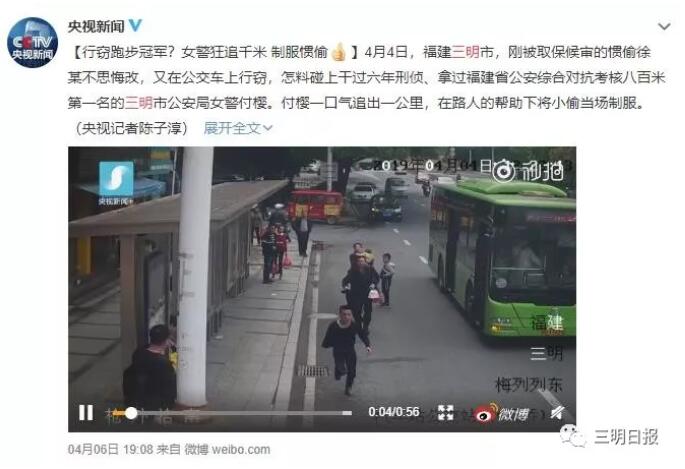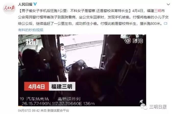 警察抓小偷天經(jīng)地義,憑啥上“熱搜”?先來看事件回顧 事件回顧 4月4日12點20分左右,三明市公安局梅列分局網(wǎng)安大隊民警付櫻和她的公公帶著兩個兒子從三明中西醫(yī)結(jié)合醫(yī)院看病后,坐19路公交車回家。 當公交車駛進汽車東站站點,付櫻準備下車時,她感覺到有人從口袋里偷走了手機。這時她轉(zhuǎn)身一看有個中年男子站在身后,出于職業(yè)敏感,她懷疑就是這個人偷走了手機。 當時,付櫻就讓他把手機拿出來,嫌疑人狡辯說“我沒拿”,付櫻抓住他的衣服說了一句“就是你偷的,拿出來”。嫌疑人就把手機丟在地上。付櫻公公抓住他的衣服并把他拉下車,一下車嫌疑人掙脫付櫻公公的手就開始跑。 付櫻將小兒子交給公公,就追上去,邊追邊喊抓小偷。追到附小附近的時候,有個年輕人幫她攔住了這個男子,付櫻跑上前將他控制。 該男子被制服后,聲稱其有艾滋病,不斷想用嘴咬民警,并威脅稱要拿隨身攜帶的刀具捅人。據(jù)了解該男子為慣犯,剛被取保候?qū)彛壳鞍讣岩平蝗魇泄簿至袞|派出所進一步辦理。 記者專訪這位女民警,不簡單! 心思縝密業(yè)務強?