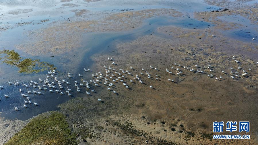 這是1月9日在榮成大天鵝國家級自然保護區拍攝的大天鵝(無人機照片)。新華社記者 侯東濤 攝