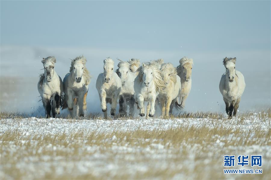 1月12日,鳳凰馬場的馬群在雪原上奔跑。 當日,內蒙古自治區錫林浩特市鳳凰馬場進行了一場馴馬活動。騎手們趕著馬群,在白茫茫的草原上奔跑,景象壯觀,吸引了不少游客和攝影愛好者前來觀賞。 新華社記者 劉磊 攝