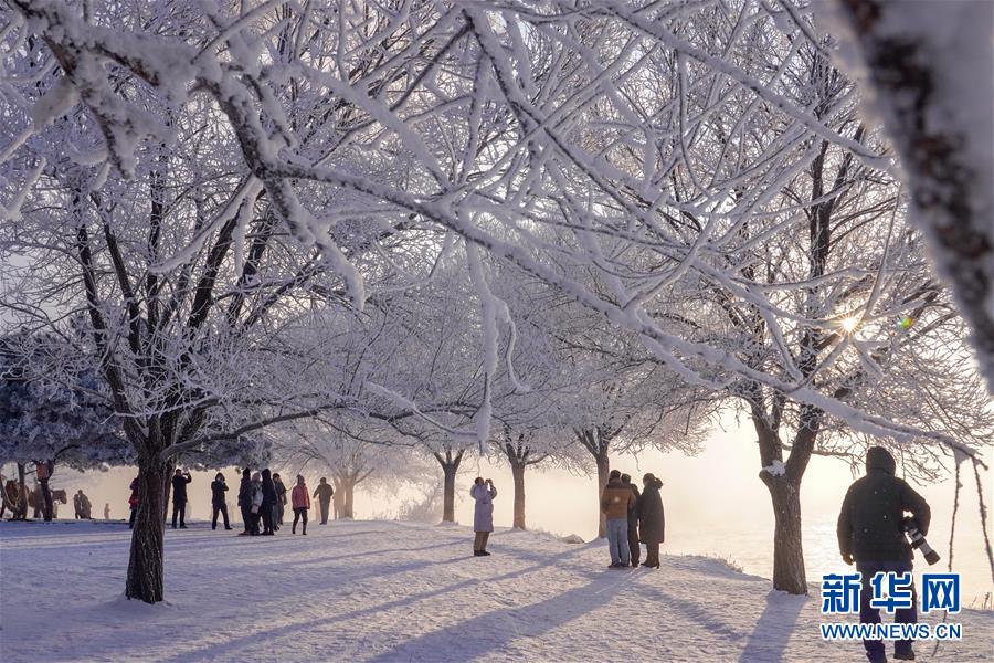 1月17日,游人在吉林市的松花江畔觀賞霧凇。 當日是農歷臘月廿三,北方習俗中的“小年”。吉林省吉林市出現霧凇景觀,松花江畔的樹木銀裝素裹,吸引眾多游人前來觀賞。 新華社記者 張楠 攝