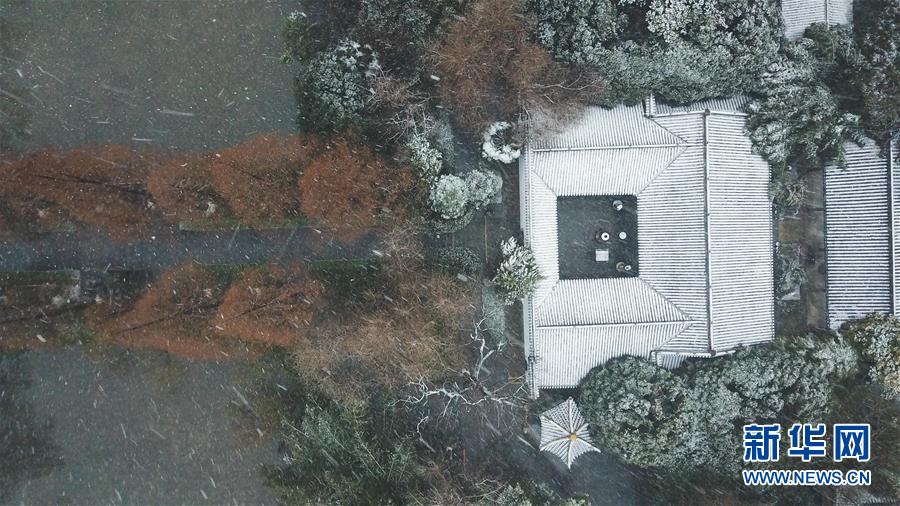 這是1月15日拍攝的合肥市包公園雪景(無(wú)人機(jī)照片)。 當(dāng)日,安徽省合肥市迎來(lái)降雪天氣。雪中的合肥市包公園景色別致。 新華社記者 張端 攝