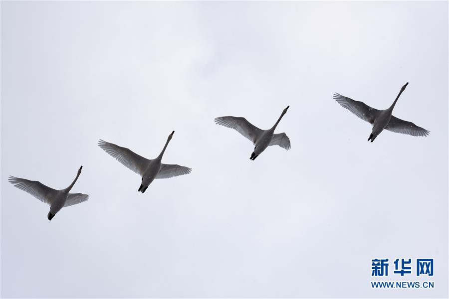 天鵝在庫爾勒市孔雀河上空飛翔(1月18日攝)。 新華社記者 丁磊 攝