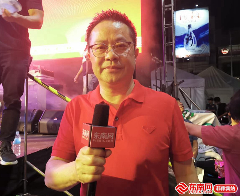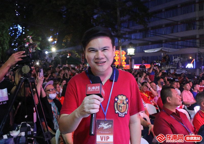 東南網(wǎng)菲律賓站站長洪五一參與晚會報道,與觀眾開展互動。