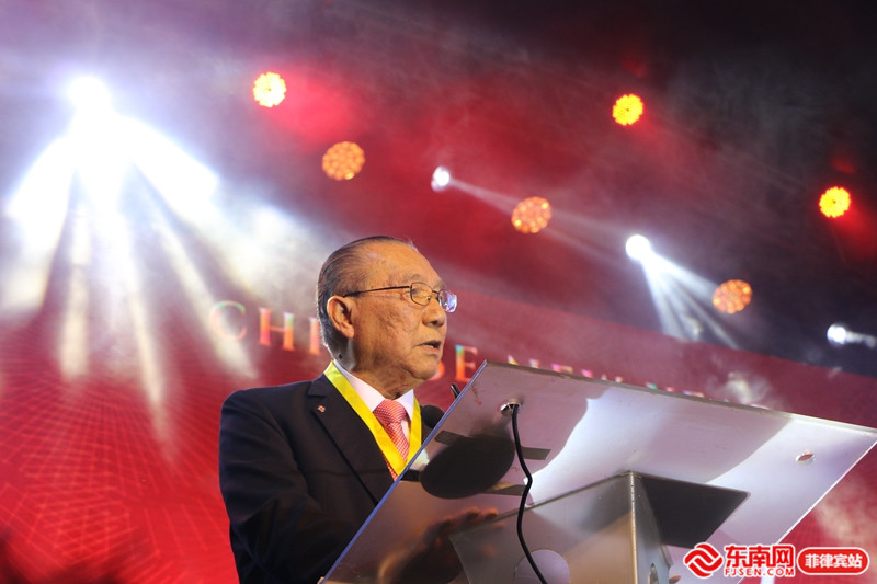 菲律賓中國商會會長洪及祥在晚會現(xiàn)場向全球華僑華人拜年。