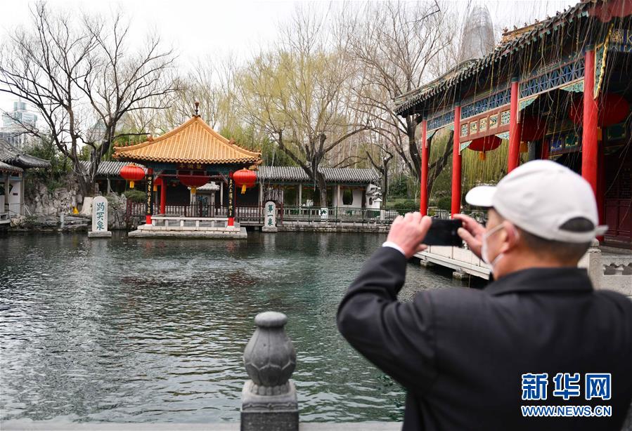 2月27日,一名游客在濟南趵突泉參觀。 當日,山東省濟南市包括趵突泉、大明湖在內的景區、公園室外公共區域恢復開放。按照疫情防控要求,所有進入景區的市民游客均須接受體溫檢測并全程佩戴口罩。同時,景區每日客流量控制在最大承載量的50%以內。 新華社記者 朱崢 攝 |
