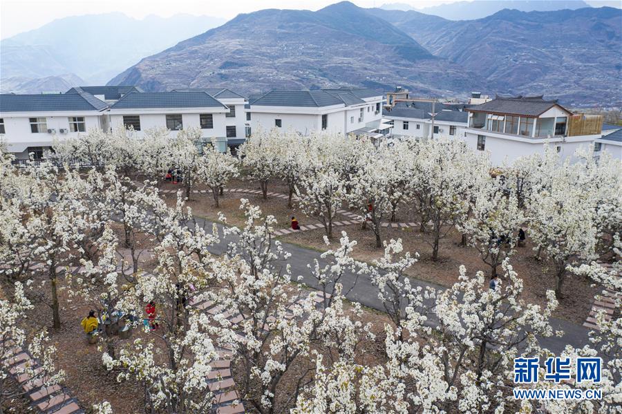 這是3月19日在四川省漢源縣九襄鎮梨花村拍攝的梨花(無人機照片)。 春日里,四川省漢源縣九襄鎮20萬畝梨花似雪般綻放,與桃花、李花等,匯聚成為一片片美麗的花海。 新華社記者 江宏景 攝