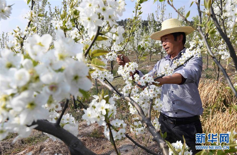 3月22日,云南省曲靖市沾益區炎方鄉炎方村的農民在果園里作業。 春季里,云南省曲靖市沾益區鄉村果園里的桃花梨花競相綻放,景色秀美,吸引游人前來觀光。 新華社記者 楊宗友 攝
