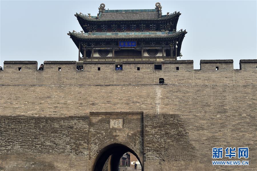 3月25日,游人在平遙古城迎薰門上游覽。 當日,山西省晉中市平遙古城重新開啟城門,迎接游客。“重啟”后的平遙古城實行實名制網絡購票,游客接受體溫測量、消毒、登記信息方可進入古城游覽。 新華社記者 徐偉 攝