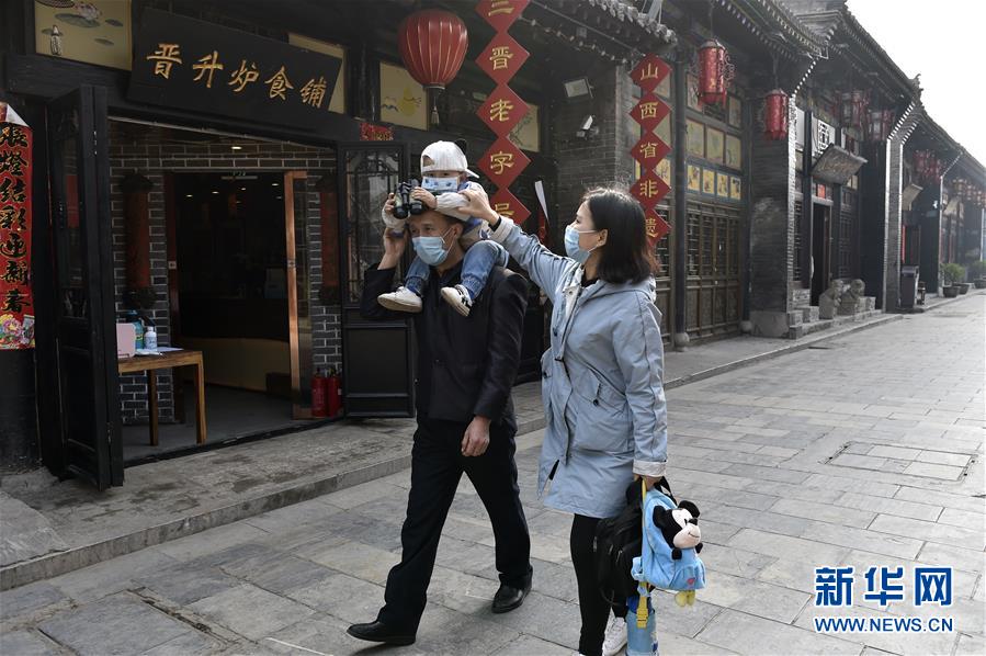 3月25日,游人在平遙古城內游覽。 當日,山西省晉中市平遙古城重新開啟城門,迎接游客。“重啟”后的平遙古城實行實名制網絡購票,游客接受體溫測量、消毒、登記信息方可進入古城游覽。 新華社記者 徐偉 攝