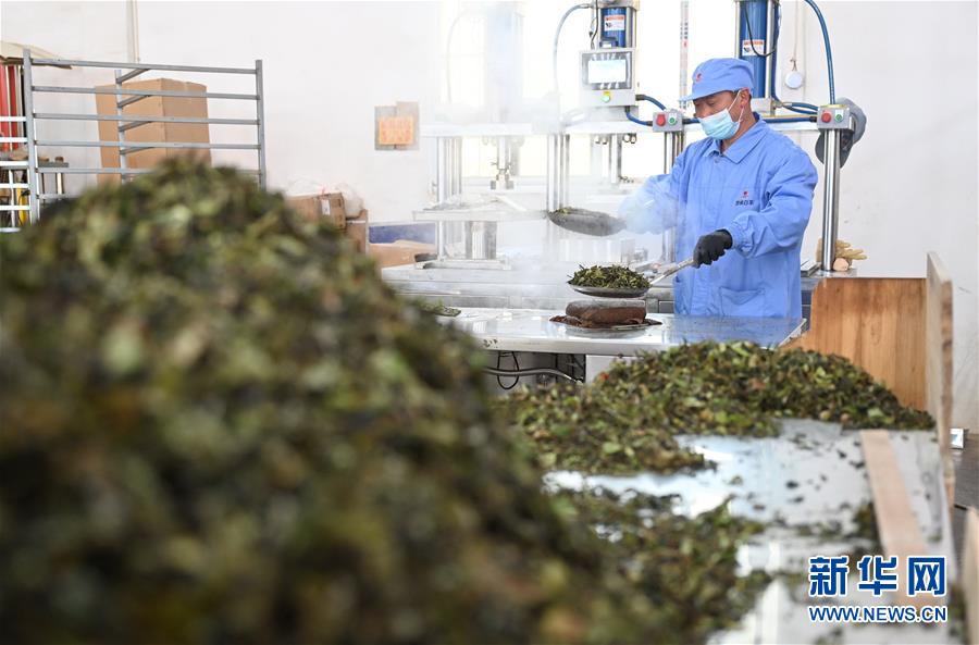 4月12日,福建省政和云根茶業有限公司員工在制作茶餅。 新華社記者 林善傳 攝