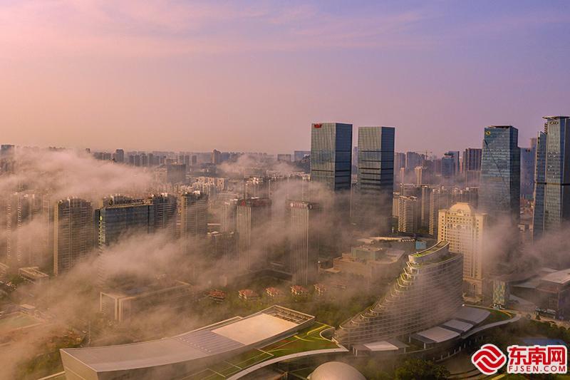 東南網(wǎng)4月19日訊(通訊員 孫二偉)19日下午,廈門(mén)上空出現(xiàn)平流霧景觀。觀音山、會(huì)展中心一帶霧氣涌動(dòng),一幢幢高樓大廈在霧海中若隱若現(xiàn),宛如人間仙境。