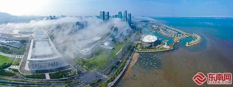廈門上空出現(xiàn)平流霧景觀 宛如人間仙境