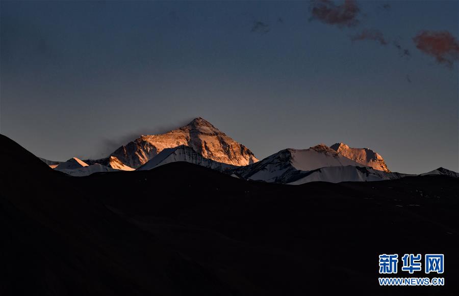 這是4月22日拍攝的夕陽下的珠峰。 世界第一高峰珠穆朗瑪峰終年積雪,頂峰云霧繚繞,美不勝收。 新華社記者 晉美多吉 攝