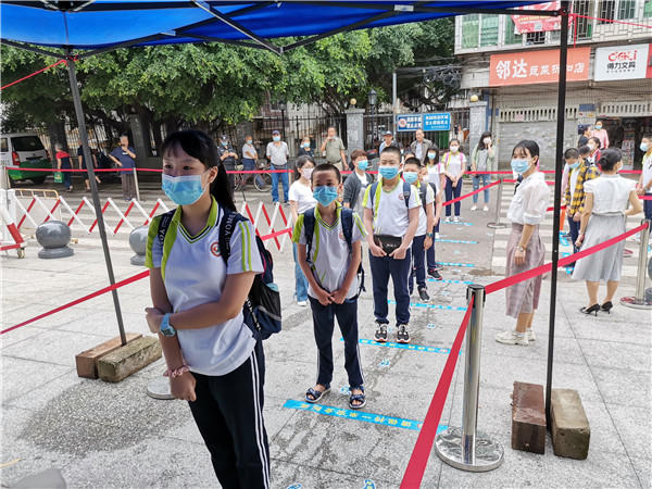 倉一小同學(xué)保持一米安全距離入校 學(xué)校供圖