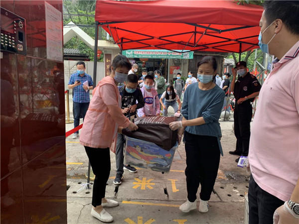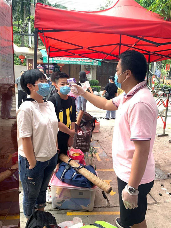 華南實驗小學同學們在測量體溫后有序進入校園 學校供圖 在福州市華南實驗小學復學返校現(xiàn)場,家長們也全部佩戴口罩,將孩子和行李送至相應(yīng)的隔離緩沖區(qū)后即離開,同學們保持一米間隔的距離等待老師測溫。讓家長們倍感溫馨的是,學校的全體教職員工早早的就等待在校園門口,迎接每位六年級孩子的到來。學校規(guī)定,考慮到同學們是寄宿,返校當天,學生的學習和生活用品等,全部由包班團隊老師和其他教職工幫助送至宿舍。