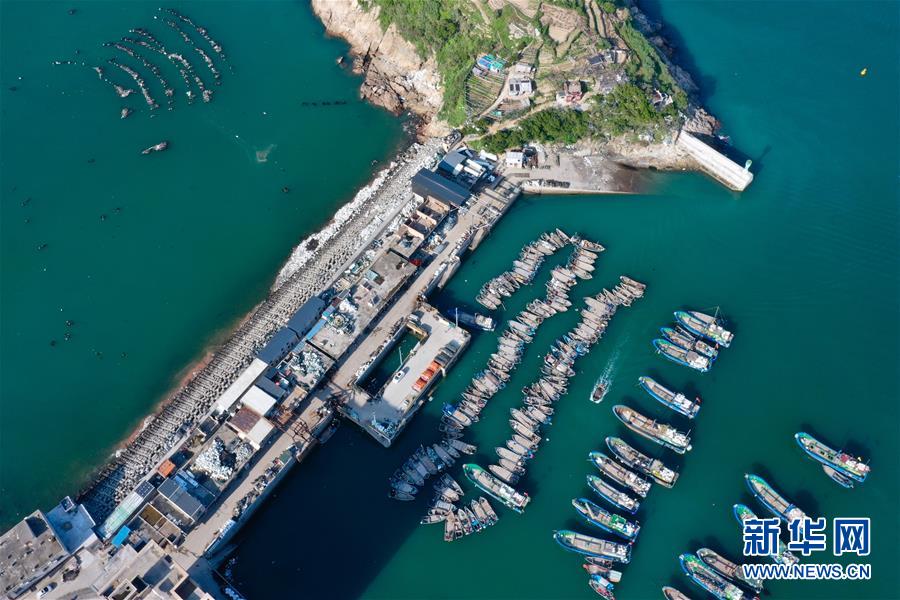 5月13日,休漁漁船停泊在福建省連江縣安凱鄉(xiāng)奇達村漁港內(無人機照片)。 新華社記者 姜克紅 攝