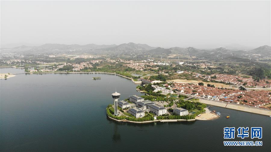 這是5月17日拍攝的雪野湖景色(無人機照片)。 山東濟南風景區——雪野湖波光粼粼,岸邊綠樹環抱,加上星星點點的帆船在湖面搖曳,景色宜人。 新華社記者王凱攝