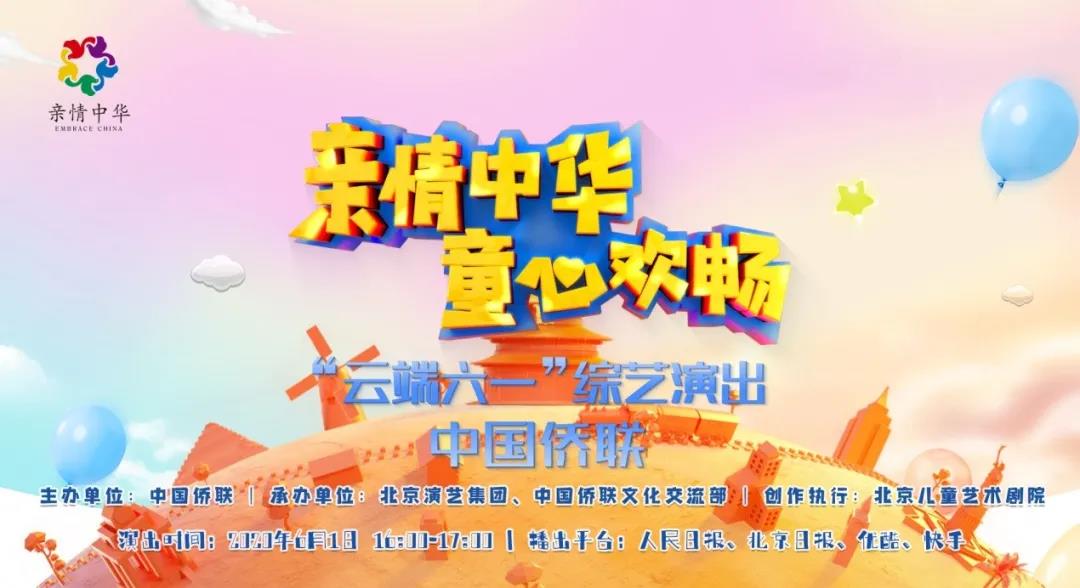 為向海外華裔少年兒童送去節(jié)日歡樂、傳遞抗疫關(guān)愛,在“六一”國際兒童節(jié)當(dāng)天,中國僑聯(lián)將首次推出“親情中華﹒童心歡暢”—— “云端六一”綜藝演出。這是中國僑聯(lián)助僑暖僑系列工作部署之一,也是中國僑聯(lián)網(wǎng)上夏令營活動的組成部分。 演出由中國僑聯(lián)文化交流部與北京演藝集團(tuán)合作打造,也是北京演藝集團(tuán)首屆線上演出季的第四場,將于6月1日下午16:00通過人民日報客戶端、中國僑聯(lián)網(wǎng)站、北京日報客戶端、優(yōu)酷、快手等平臺同步播出,為海外華裔少年兒童獻(xiàn)上一份有歡樂、有溫度、有感悟的節(jié)日禮物,傳達(dá)中國僑聯(lián)、藝術(shù)家和少年兒童對海外華裔少年兒童的祝福。
