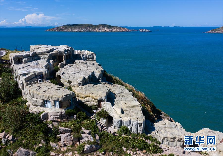 這是無人機(jī)拍攝的南麂島懸崖特色酒店(7月29日攝)。新華社記者 徐昱 攝