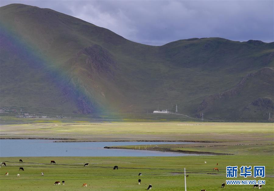 7月29日在羊卓雍措(又稱羊湖)拍攝的彩虹。 盛夏時節,位于西藏山南市浪卡子縣的羊卓雍措氣候涼爽、風光秀美,令人向往。 新華社記者 張汝鋒 攝