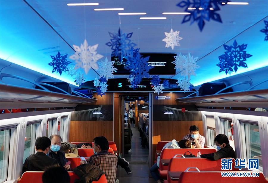 京張高鐵列車內的冰雪元素裝飾(9月26日攝)。新華社記者 張晨霖 攝