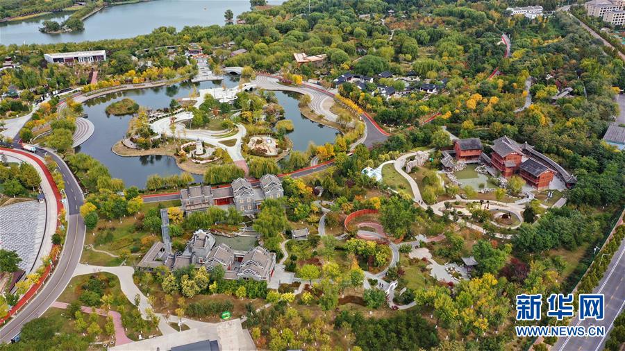 這是10月20日拍攝的唐山市南湖景區(無人機照片)。 河北省唐山市南湖景區是唐山市的“城市綠肺”,由開灤煤礦采煤沉降地經過綜合治理形成。秋季,南湖景區層林盡染、花海斑斕、湖水清澈,景區建筑與水面交相輝映,美不勝收,成為市民休閑、健身的好場所。 新華社記者 牟宇 攝