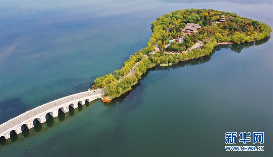 這是10月20日拍攝的唐山市南湖景區(qū)(無人機照片)。 河北省唐山市南湖景區(qū)是唐山市的“城市綠肺”,由開灤煤礦采煤沉降地經(jīng)過綜合治理形成。秋季,南湖景區(qū)層林盡染、花海斑斕、湖水清澈,景區(qū)建筑與水面交相輝映,美不勝收,成為市民休閑、健身的好場所。 新華社記者 牟宇 攝