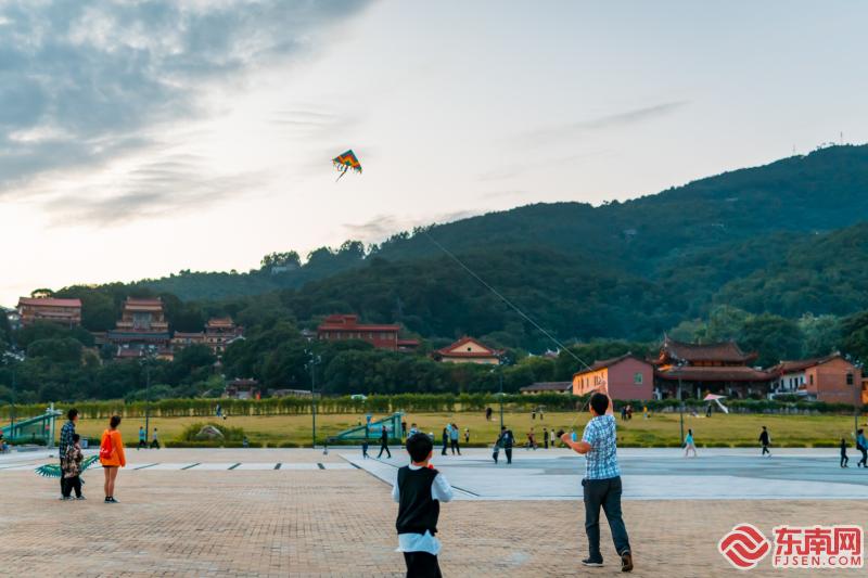 在南湖公園與廣化寺前廣場,許多市民帶著孩子放風箏