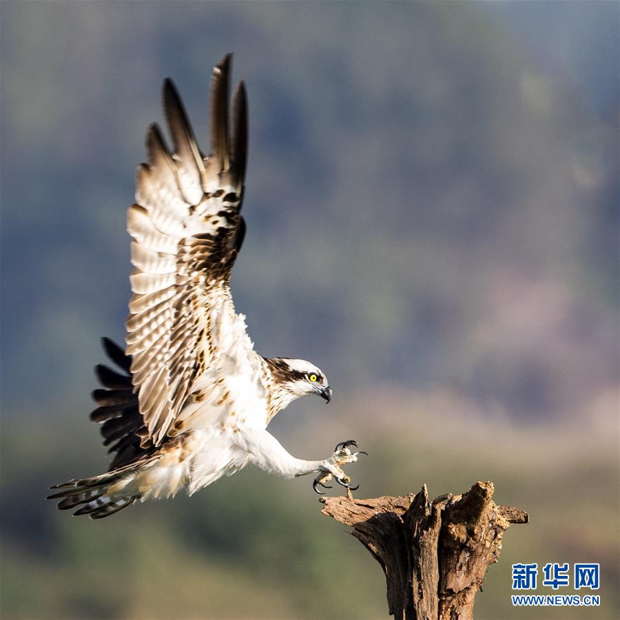 鶚鳥在衢江江邊枯木上嬉戲(10月31日攝)。新華社記者 梅永存 攝