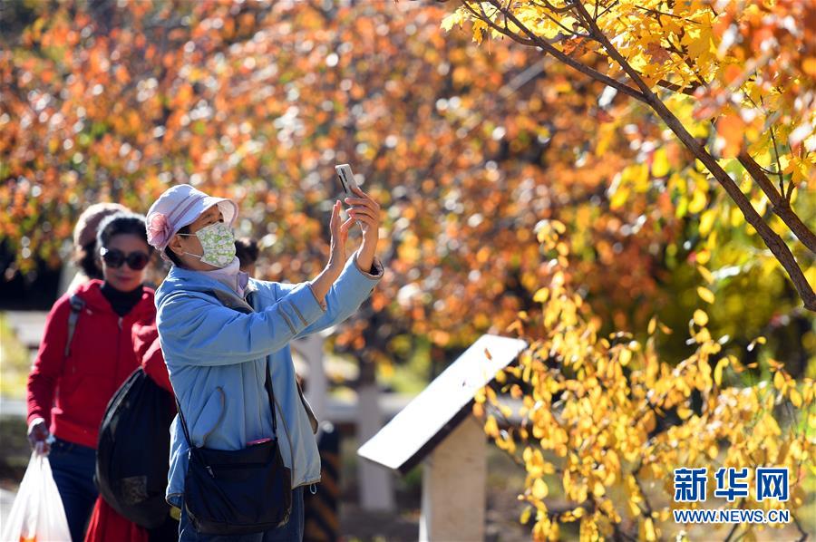 11月1日,游人在北宮國家森林公園拍照。 深秋時節,市民及游客來到位于北京市豐臺區的北宮國家森林公園秋游賞葉,歡度周末。 新華社記者 任超 攝