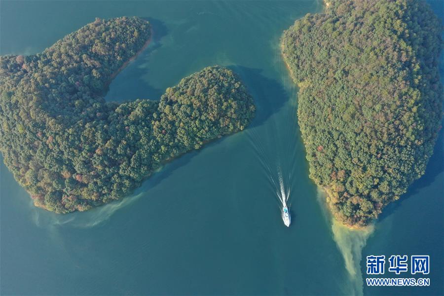 這是11月7日拍攝的廬山西海(無人機照片)。 當日是立冬節氣,江西廬山西海在陽光下波光粼粼,美不勝收。 新華社記者 周密 攝