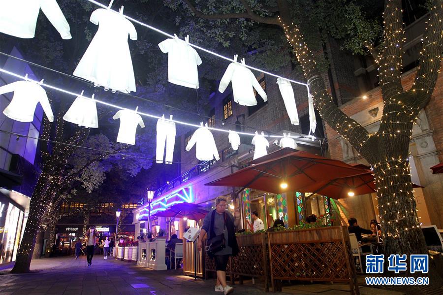 11月16日,主題為“鄰里”的彩燈在上海新天地綻放。 當日,“2020光影上海”燈光藝術節在上海新天地揭幕,由國內外藝術機構設計制作的一批光影藝術裝置亮相,助力申城夜間經濟。 新華社記者 陳飛 攝