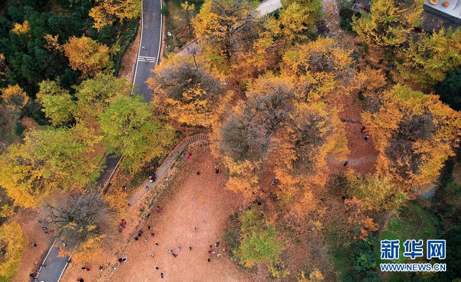11月21日,游客在桐子坳村銀杏林游覽(無人機照片)。