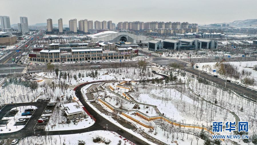 11月23日拍攝的雪后延安市新區(無人機照片)。