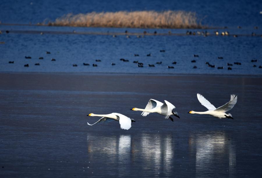 近日,大批遷徙的天鵝來到位于北京市懷柔區的懷柔水庫,成為冬日里一道生態美景。新華社記者 楊文斌 攝