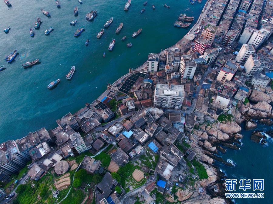 休漁漁船停泊在福建省連江縣苔菉鎮(zhèn)北茭村海灣內(nèi)(5月13日攝,無人機(jī)照片)。